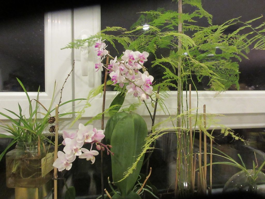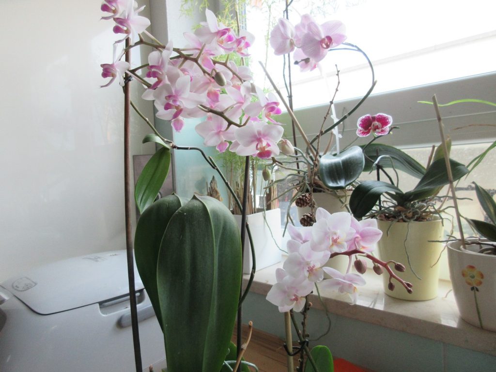 Hoa lan ra hoa rồi phải cắt đi, thì đợt hoa tới sẽ mọc từ gốc. Đôi khi mình quên không cắt, thế là đợt mới ra từ cành hoa cũ, dài loằng thoằng.