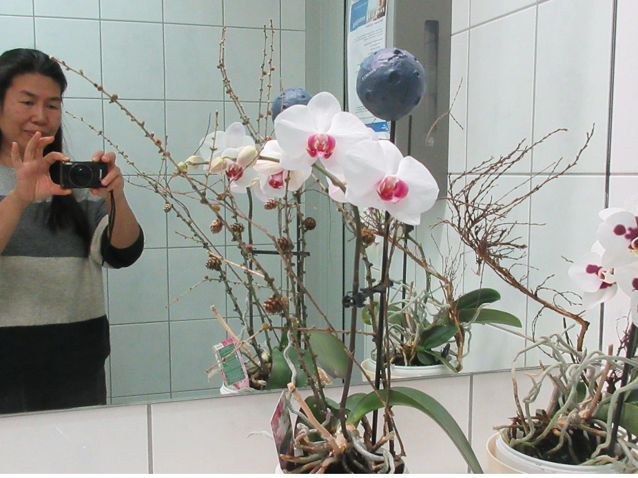 Có 2 cây chụp ở chỗ làm. Một cây của Hella gửi lại trước khi bà ấy nghỉ hưu. Mình sẽ gửi cho bà ấy xem. Vậy là phải đến 9 năm Hella có mặt ở chỗ làm. Chỉ khoảng 3 năm sau này mình nhận ra có một sự thanh thản trong bà ấy, cũng là thời gian bà ấy mua cây phong lan này. Thời gian này mình hay nói chuyện với bà ấy. Còn trước đó lúc nào cũng tất bật, bận rộn.