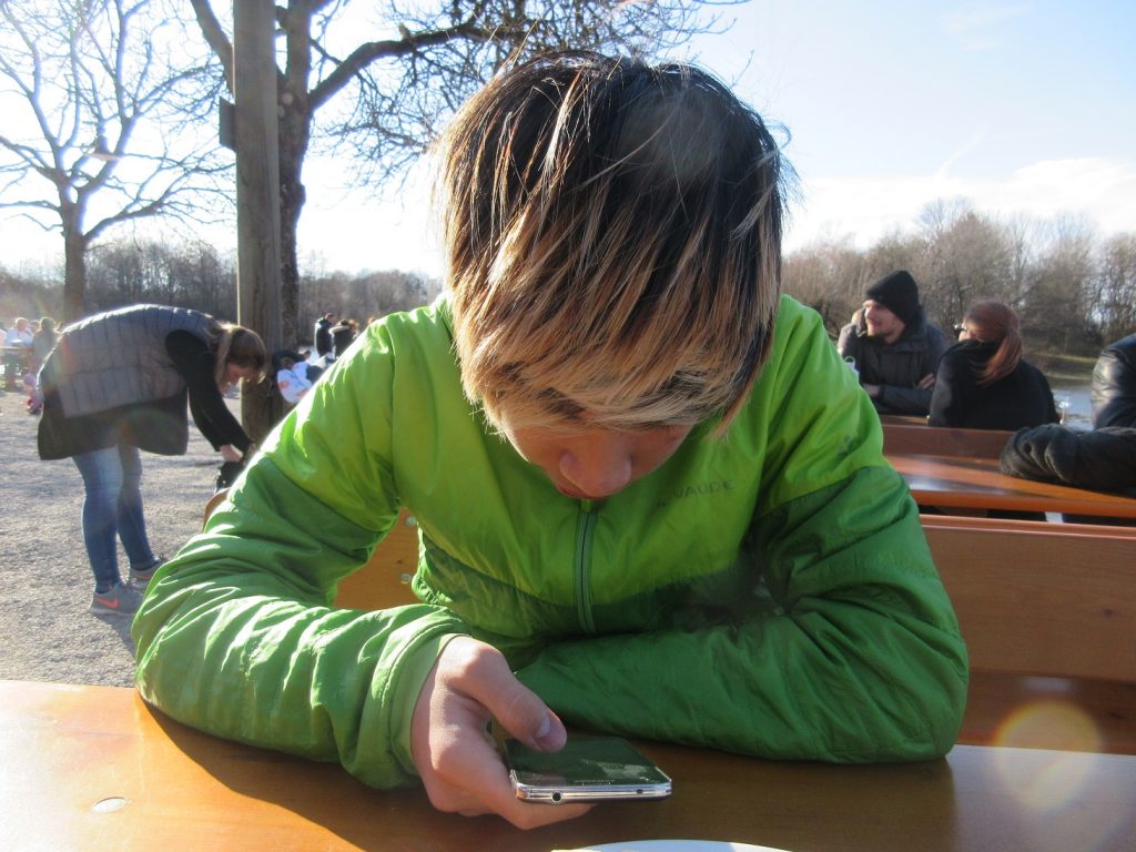 Cả hai bạn mỗi người đi một chỗ, mở Handy ầm ỹ.