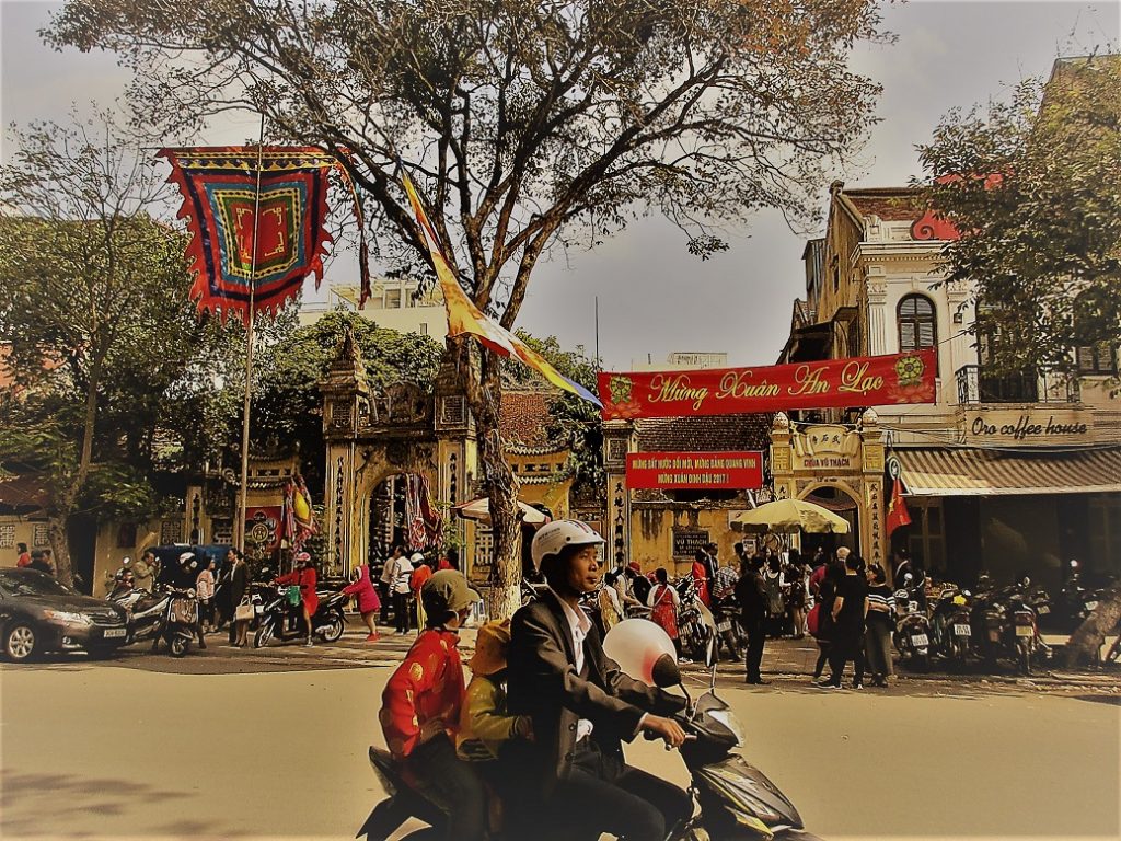 Bạn xung phong đèo tôi đi chơi phố phường trước Tết, và thế là tôi tậu được loạt ảnh này khi ngồi sau xe bạn.