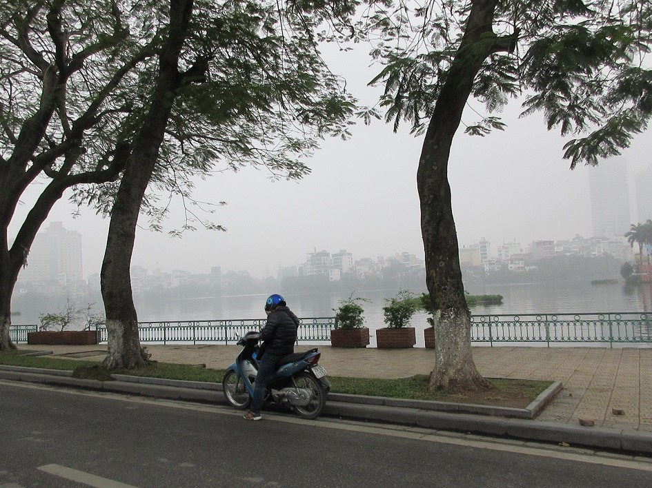 Cuối năm tiết trời se lạnh. Trên mặt hồ luôn như có lớp sương mù, mờ mờ ảo ảo. Sương tràn ra cả đường. Người đi đường ai cũng co ro áo mũ kín cổng cao tường.