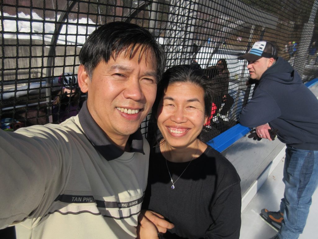 Không hiểu hai chị em cụng nhau cả ngày ở nhà cả ngày làm gì, mà tới khi đi trượt băng chúng nói chuyện với nhau không ngớt.