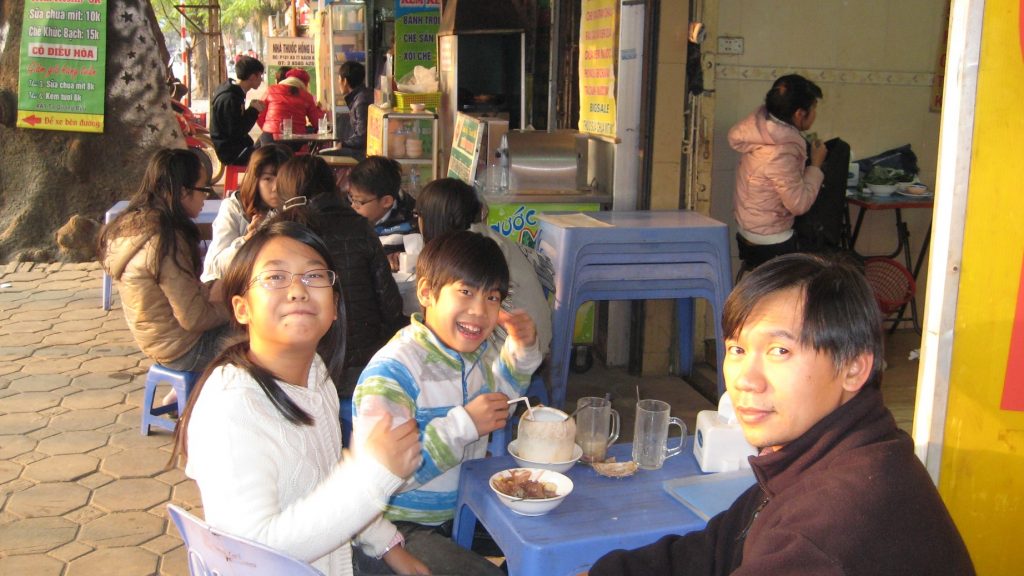 Một trong các món khoái khẩu của các bạn là chè. Quán chè ngay gần nhà ông bà ngoại rất bình dân, hợp với túi tiền sinh viên. Ngồi vào đám bàn ghế nhựa cáu bẩn mới đầu thấy hơi lạ lùng, nhưng sau một lát thấy ok, lại như đã từng ngồi đó cả đời.