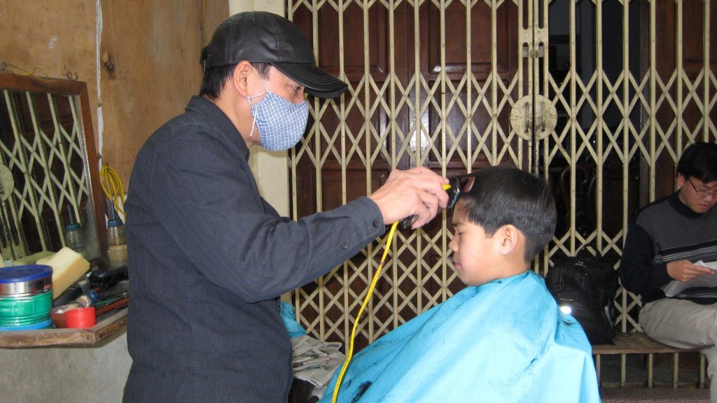 Được chú Tuấn bên nhà nội đi khuyến mãi quả cắt tóc vỉa hè. Không hiểu sao lại có quả ảnh này, vì mẹ không nhớ là đã đi cùng hai chú cháu.