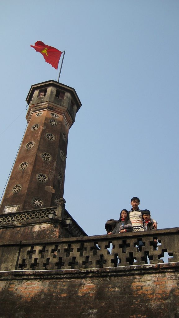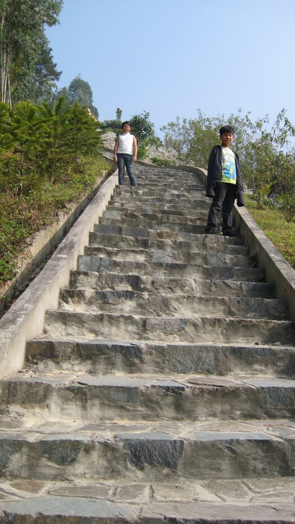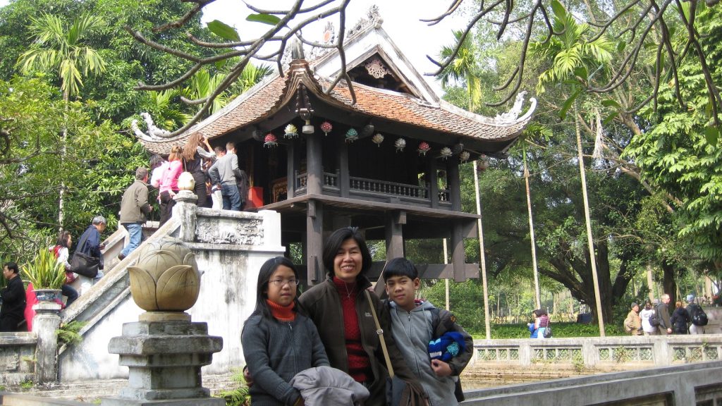 Đợt này các bạn đủ lớn để có thể đi bộ quanh trung tâm thăm thú thêm một chút. Đây là chùa Một cột. Mang tiếng ở Hà nội, chắc đây là lần thứ 3, 4 gì đó mình tới thăm chùa Một cột. Trước đây, hoặc do nhà cửa chưa có nhiều ở xung quanh, hoặc do mình còn bé nên thấy khu vực này có vẻ rộng hơn. Giờ thăm lại thấy chật chội và nhỏ hơn nhiều. Cái cầu thang bằng bê tông mới nhìn thấy hài hước kinh. Nhìn một lúc thấy cũng quen.