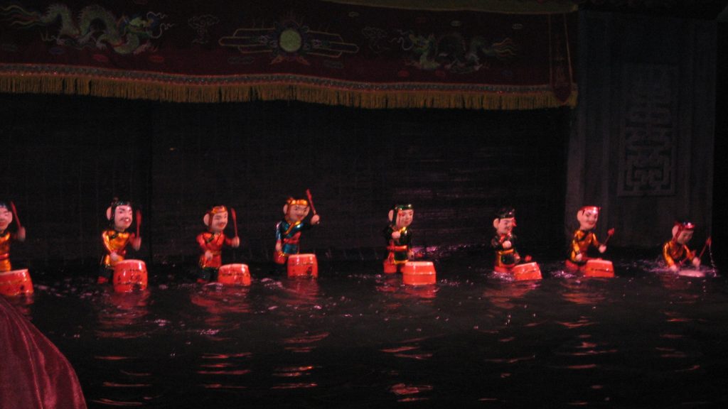 Múa rối nước, hình như chỉ chị Tủm và Bông vào xem.