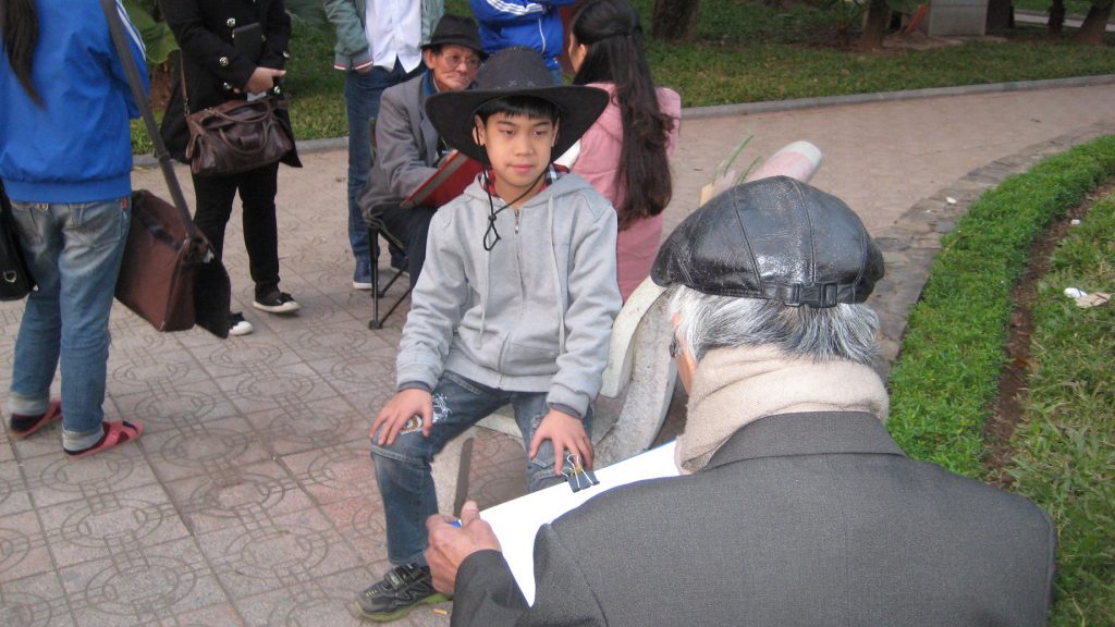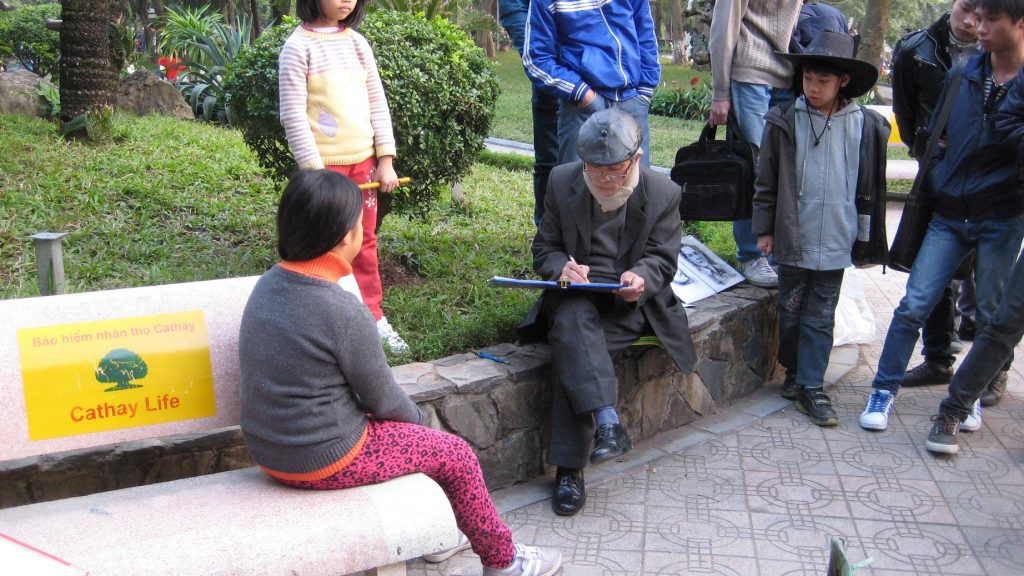Quanh Hà nội có nhiều người vẽ chân dung để kiếm tiền.