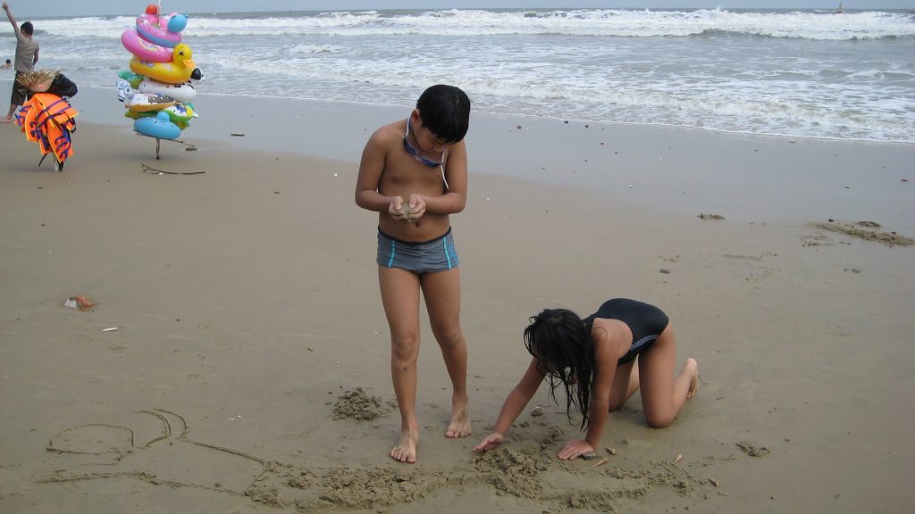 Vũng tàu – khách sạn nằm ngay sát biển. Tủm Tí lại chạy ngay ra biển lăn lê bò toài trên cát. Trong khách sạn cũng có bể bơi rất đẹp, Na và Linh bơi ở đó, còn Tủm Tí lúc đầu có vẻ thích biển hơn, nhưng sau đó một lúc cũng vào nghịch ở bể bơi.