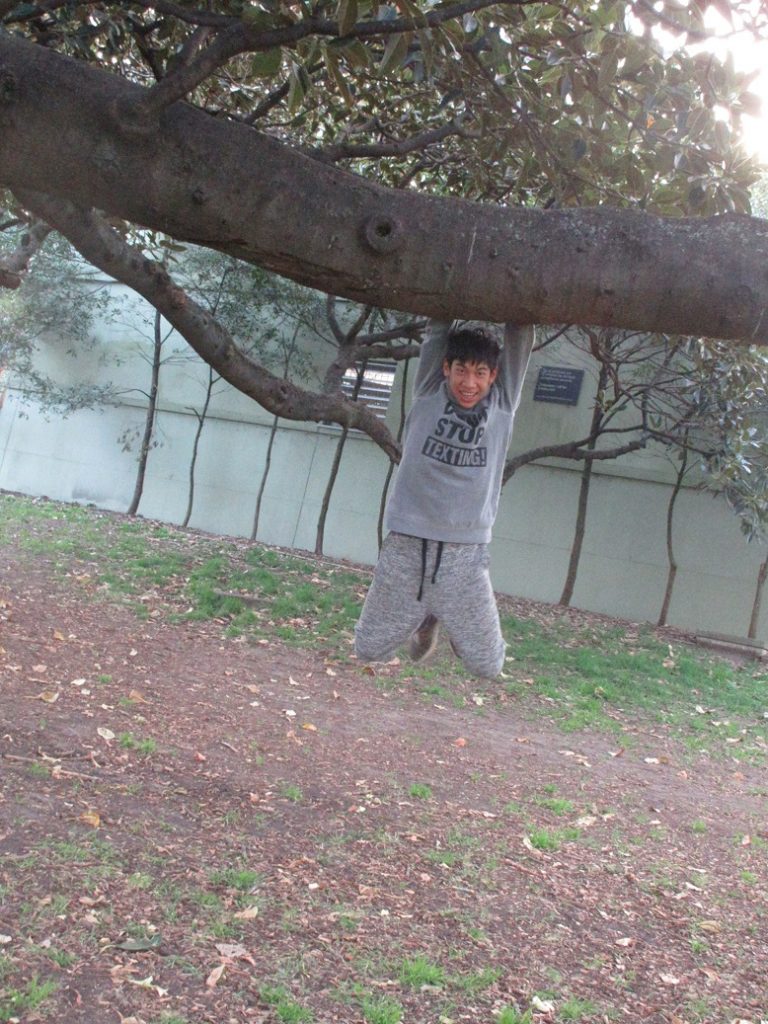 Áo này anh nằng nặc đòi mua khi đi mua bán cùng cô Minh. Lúc đó áo to, rất rộng, thùng thình, vì là áo của người lớn. Sau đó anh còn mặc được một thời gian, chắc phải gần 2 năm. Giờ áo vẫn còn treo trong phòng anh, nhưng có vẻ không còn vừa nữa, lâu rồi không thấy anh mặc lại.