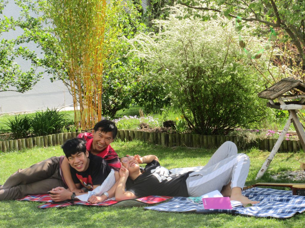 Tiết trời lành lạnh, mặc ấm, ngồi để chân ra ngoài nắng rất dễ chịu.